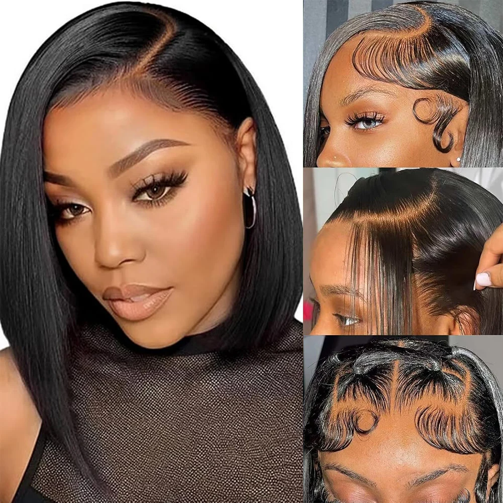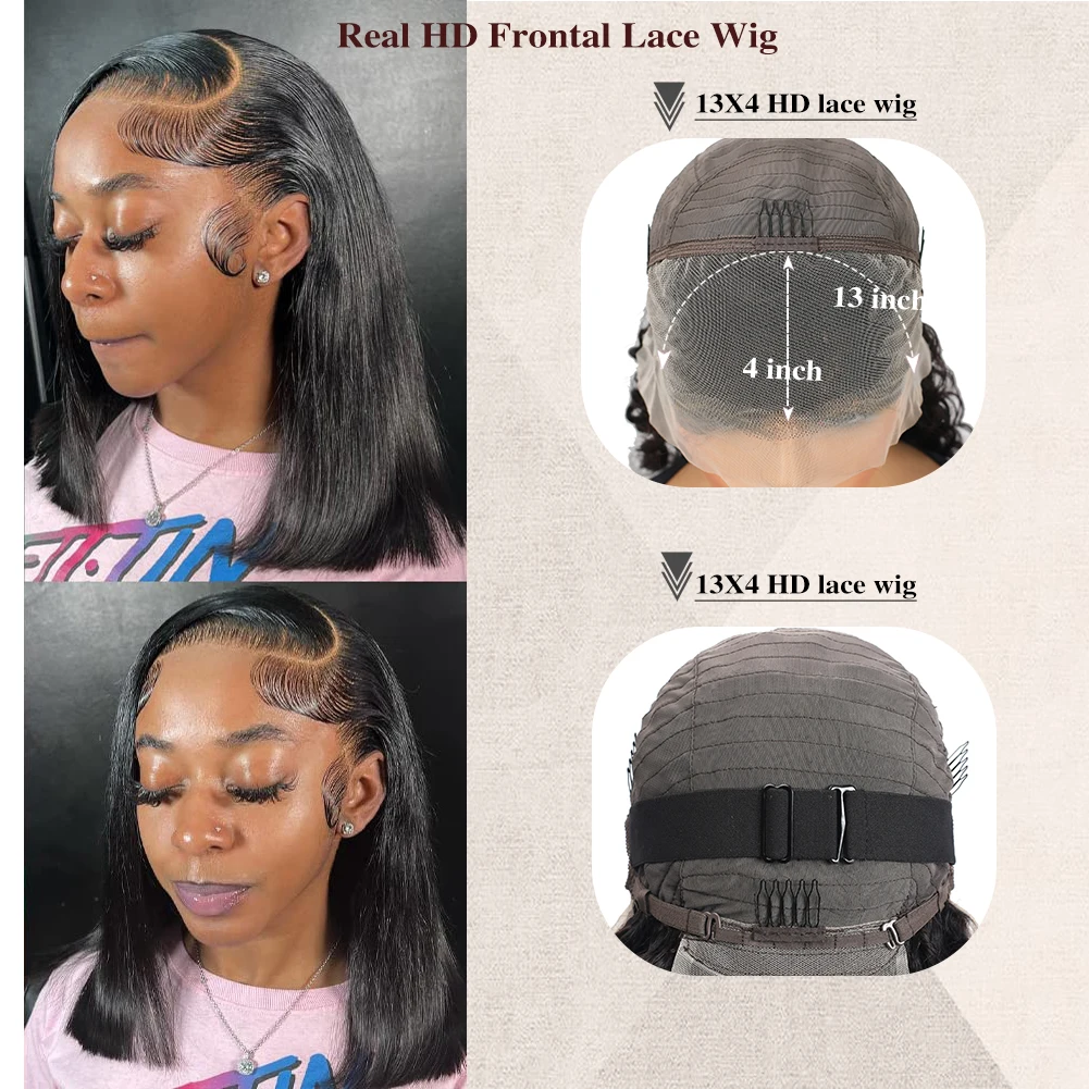 Glueless Wig Human Hair Ready To Wear Short Bob Wigs For Women Transparent 13x4 Lace Front Human Wig Human Hair Wig Bob Wig