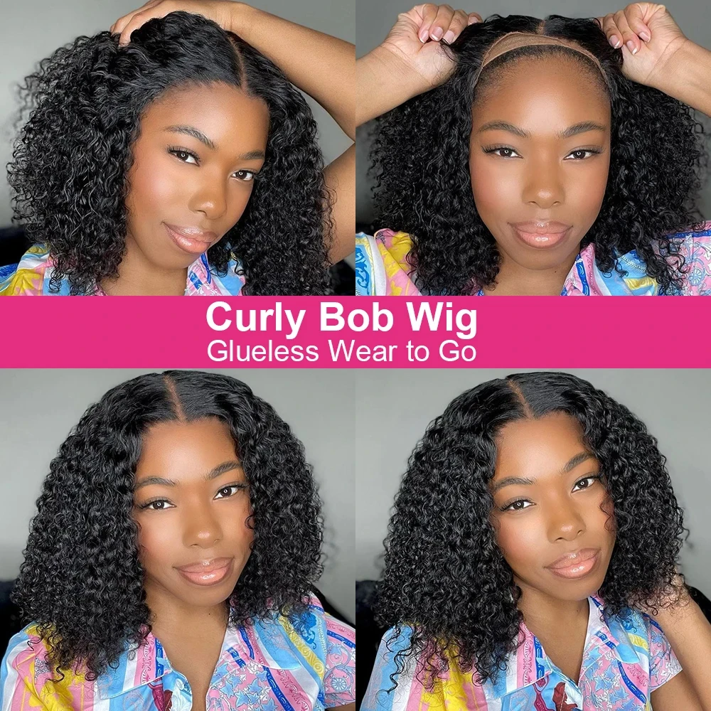 Style: bob wig humain hair,Wear & Go Glueless Curly Wig
