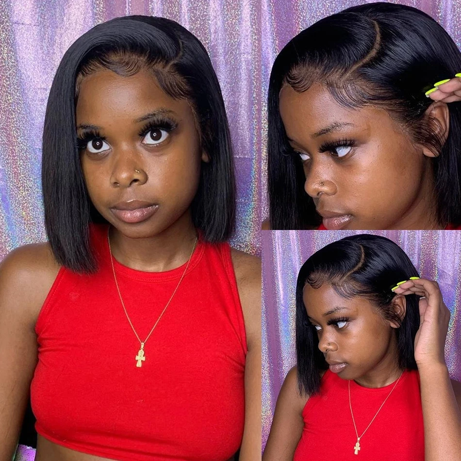 Wear And Go Glueless 100% Human Hair Wig HD Lace Bone Straight Short Bob 13x4 Lace Frontal Wig Ready To Go Wigs Pre Cut No Lace